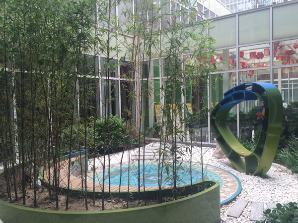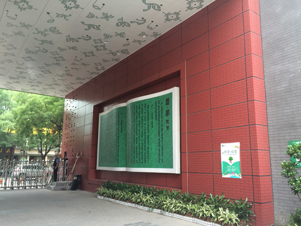 采用現代材料與中式元素結合,打造文化底蘊深厚的景觀環境。學校理念文化雕塑融入在優雅的自然環境中,造型簡潔易懂給人留下深刻印象。