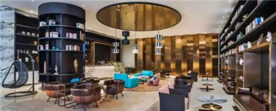 酒店的大堂被賦以全新的詮釋,成為一處供賓客暢談交流、激發創意火花的社交聚會場所。精美的藝術裝置安放在大堂各處,散發著時尚現代之感和強烈的藝術感染力;獨具特色的座椅布置能夠激發客人之間的對話和互動,進而喚醒他們的奇思妙想和靈感;灰色大理石飾面的景觀墻則是大堂的一處吸睛之筆,與實木地板紋理的別致構造交相輝映,景觀墻上的黃銅飾品和金屬網狀隔板也尤為搶眼。