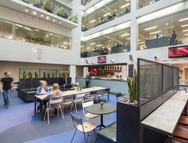 每一層樓都采用低層的照明設置、裸露的天花板、黑色的可回收木地板,還有黑色的窗戶框,周圍是一圈與眾不同的深綠色飾物。這間新辦公室不僅高端大氣,而且能夠吸引那些大牌的音樂藝術家前來錄音,這里真是太舒適了。