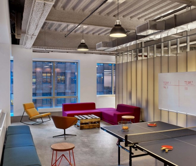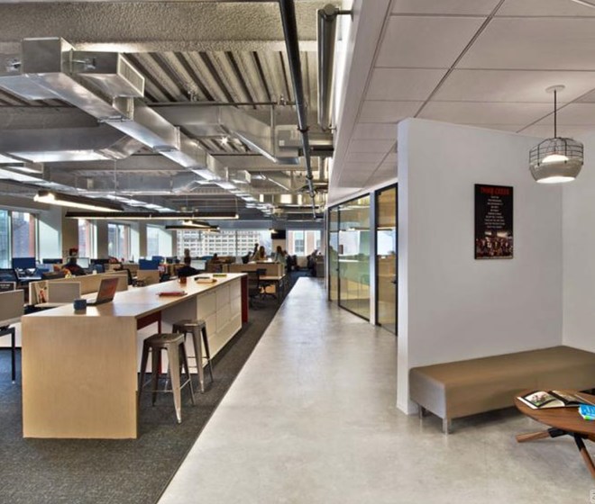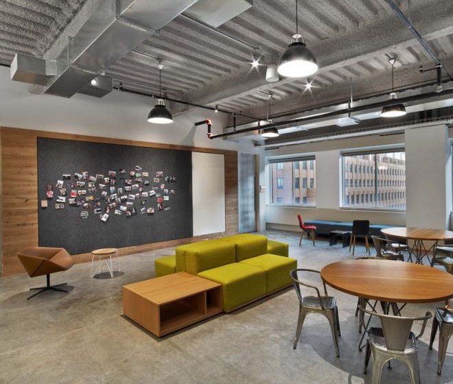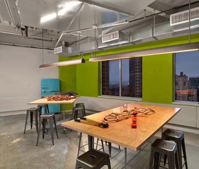 客戶進入辦公室應(yīng)該可以通過辦公室的顏色、形狀和工作氛圍來描述出該公司是做什么的,并且怎么做的。Tough Mudder的總部就是這樣的設(shè)計作品,該辦公室是由M Moser Associates完成的。