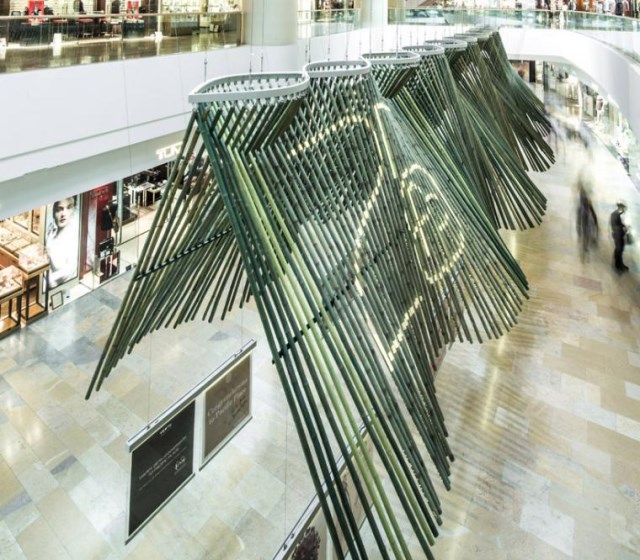 “this is OUR place”以懸掛在中庭天花板上的成對的大型音樂號角為特征,懸在空中的樂器是由柳條編織而成,與青銅金屬表面形成溫暖的氣氛。裝上多媒體之后,人們還能沉浸在3個大號角的360°全景下。