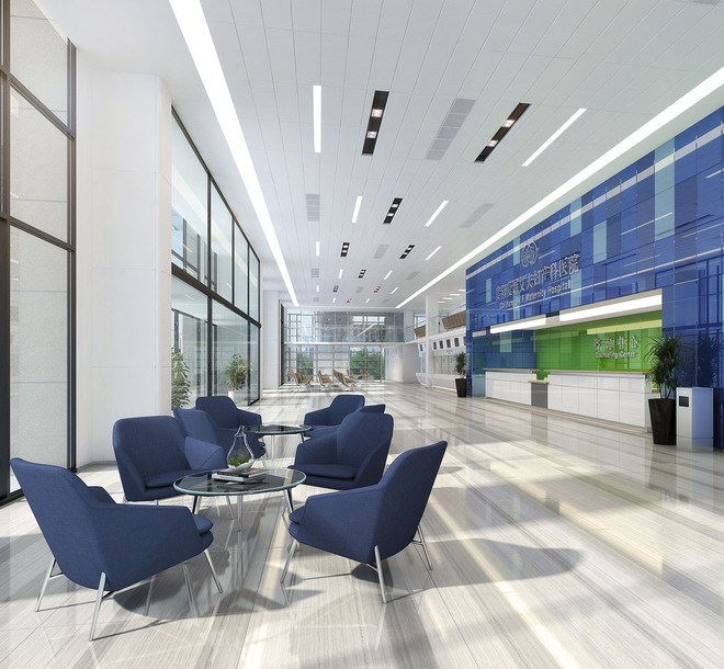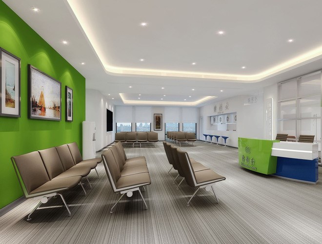 這兩種顏色都屬于可以給患者帶來(lái)安靜,平穩(wěn)的心情的顏色,但這兩種顏色又是屬于冷色系,我們不能讓本來(lái)就冷冰的醫(yī)院再添加太多冷色系的元素,空間需要有動(dòng)感,由暖色系來(lái)作為主色調(diào)。