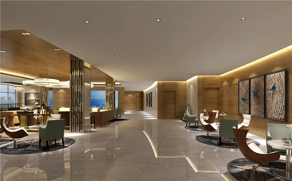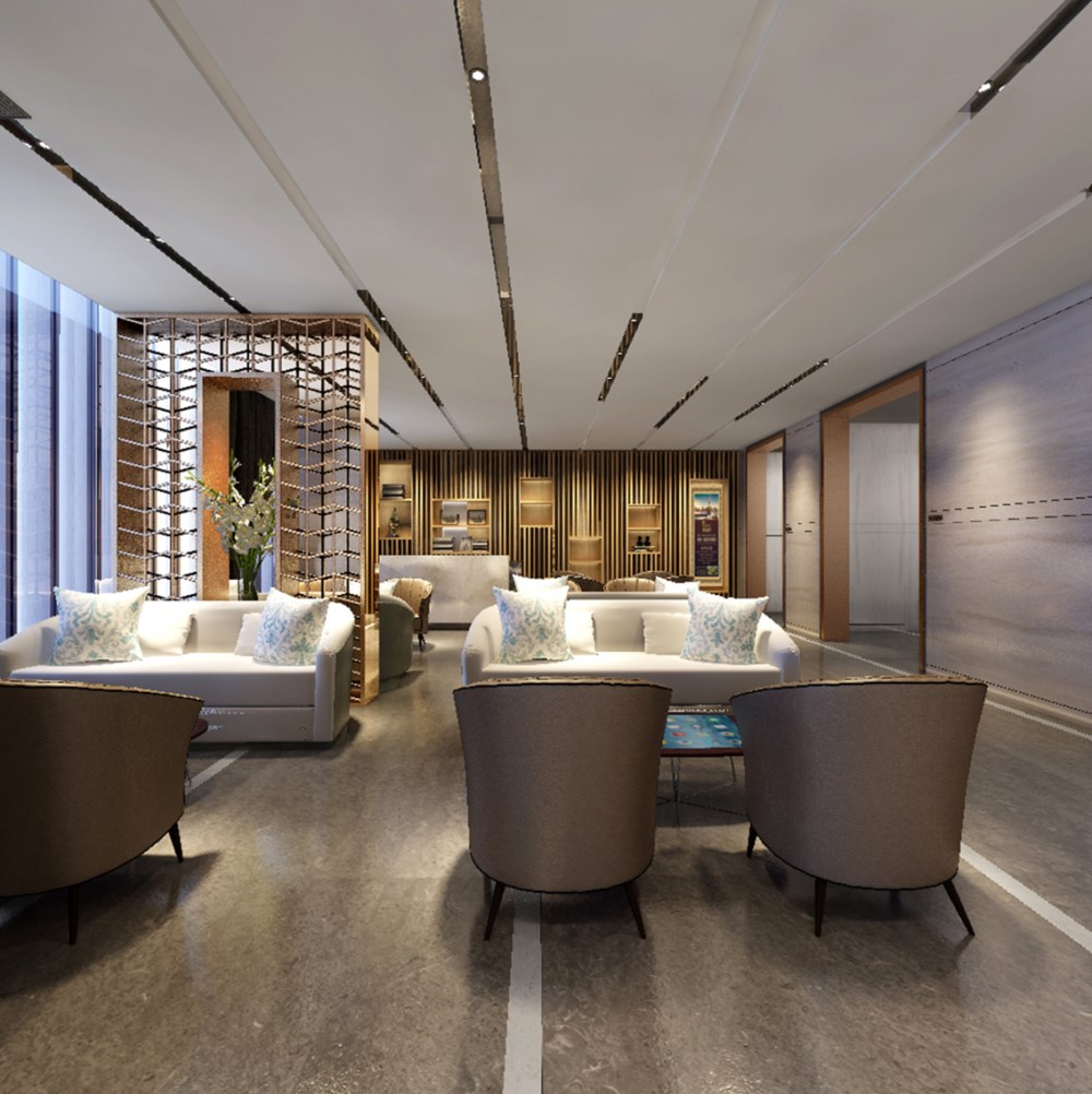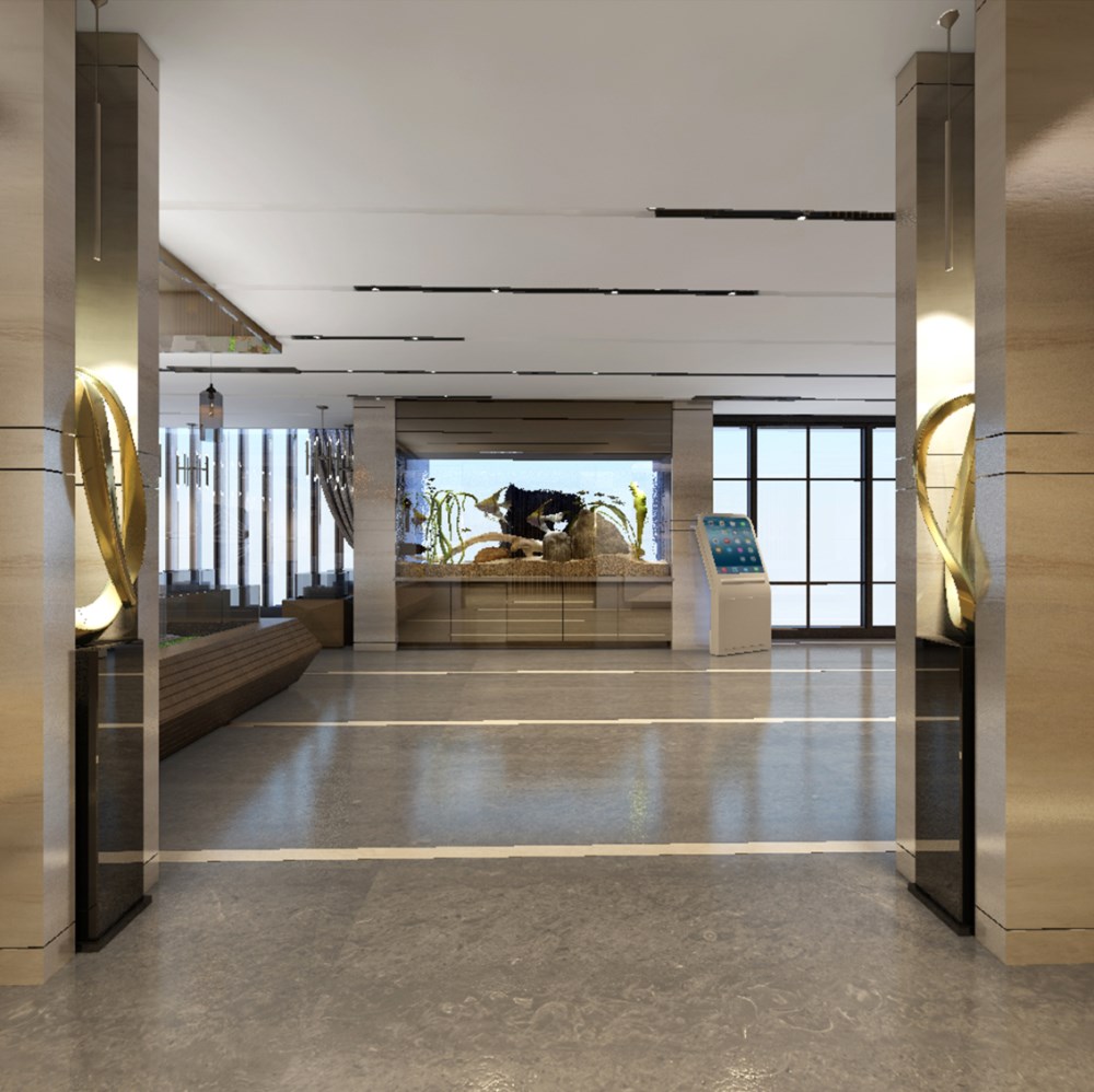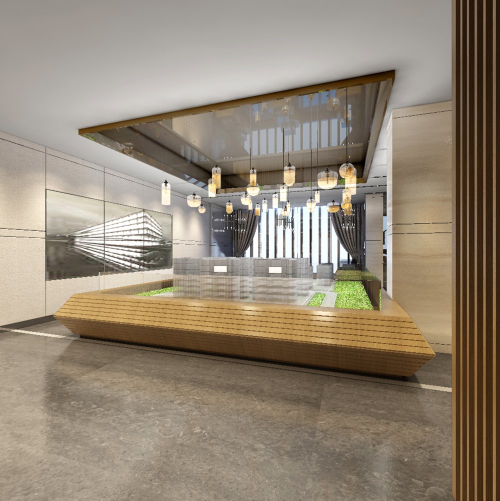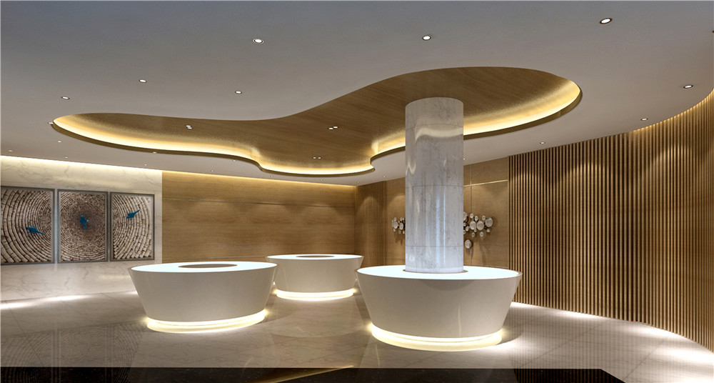 吊燈的設計簡單大方,讓整個接待區都顯得更加寬敞明亮,白色的大理石質感的地板充滿了溫暖的氣息,可以讓顧客感到更加溫馨典雅。