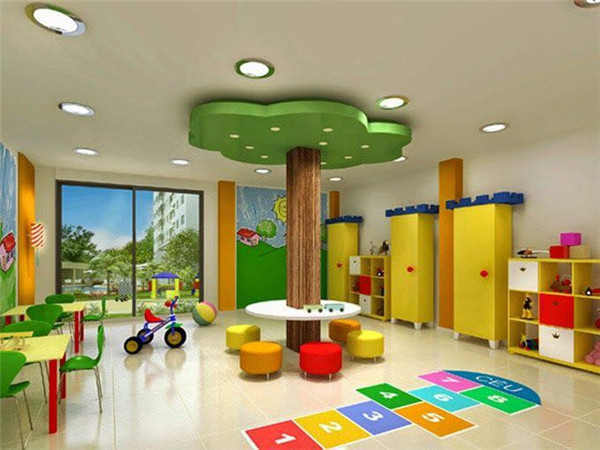 本案設計元素來源于七彩虹,整個空間以七彩為設計思路。幼兒天生就對顏色鮮艷的事物感興趣。那么,大千世界有些什么顏色呢?