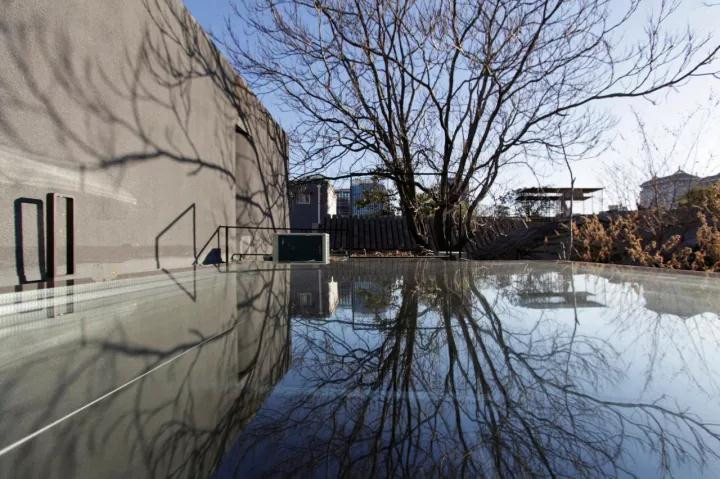 這是位于日本福岡某木材回收公司的辦公室。辦公室設計使用了可回收材料和自然能源,這十分符合該公司形象定位。辦公室建筑的墻壁和天花都是玻璃的,內部覆蓋上一層編織如柳框圖樣的木條層,這層材料讓白天的天光變得柔和,人們不需要開燈就能辦公;這層材料也使辦公室不至于過熱,減少對空調的依賴。所使用木材來自回收的雪松木材。自然清新環保節能的項目。