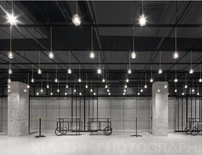 如恩將北京瑜舍酒店內的“北”餐廳重新改造成為一個多功能廳——“北”空間,以應對北京對會議與活動空間日益增長的需求。典型的酒店多功能廳往往比較幽閉昏暗,而“北”空間內有一排天窗。