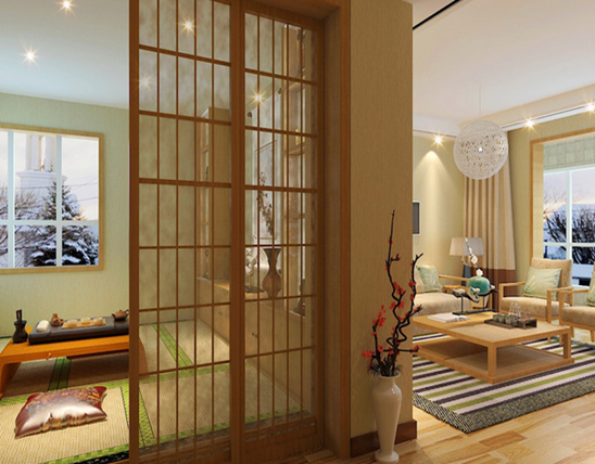 日式風(fēng)格追求的是一種休閑、隨意的生活意境。空間造型極為簡潔,在設(shè)計上采用清晰的線條,而且在空間劃分中摒棄曲線,具有較強的幾何感。日式風(fēng)格最大的特征是多功能性,如白天放置書桌就成為客廳,放上茶具就成為茶室,晚上鋪上寢具就成為臥室。