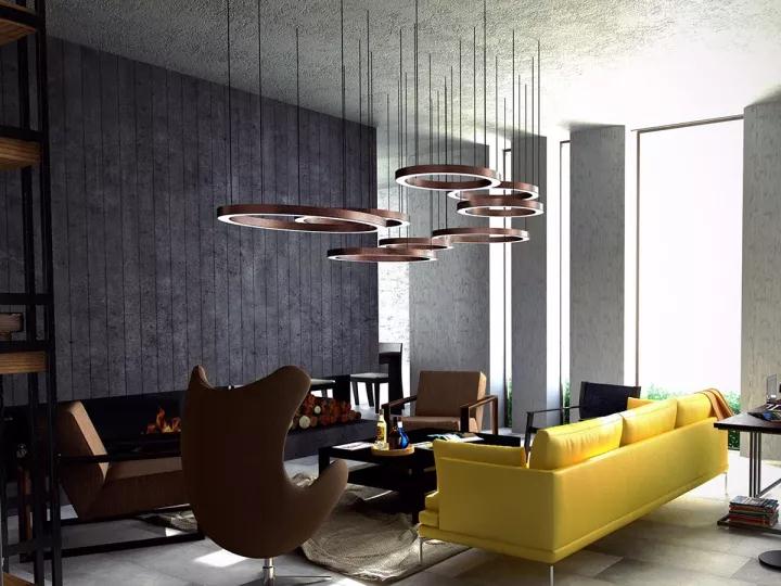 后現(xiàn)代圓環(huán)型吊燈,造型簡單時尚,光與圓的巧妙搭配,讓颯爽的燈光鋪滿一地,寂靜而又震撼。